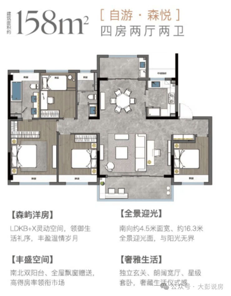 面积约131㎡爆款户型,以超越同类产品的匠心细节,领誉高贸新城,“一镜到底式”开放布局,放大活动领域,X创变空间,赋予生活更多想象;南向转角阳台,凸显延展性与空间感;五大空间关怀,增幅每个空间的仪式感,给予家庭成员自由自在的奢享,赋予家庭幸福感。