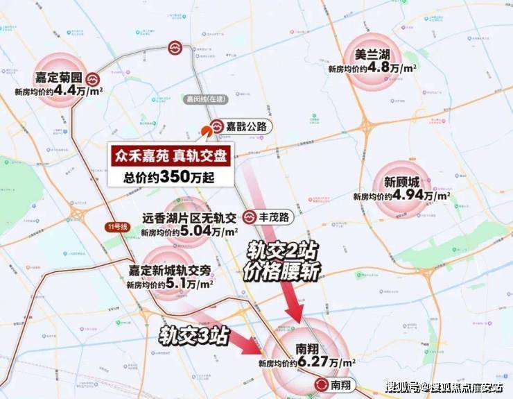 这些都归因于人们对于嘉定这个区域的高度认可:成熟的城市界面,便捷的交通,距离市区更近等等优势。2024年,位于嘉定新城的众禾嘉苑,直线距离嘉闵线(在建中)仅约20米,打响嘉定楼市第一炮。