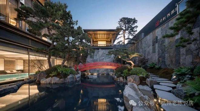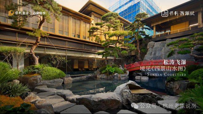 5. 取意三大宋画,融合杭州山水精粹,园林布局「一轴八境」展开,通过假山、叠水、屏风等元素,串联起移步易景的园林场景,再现刘松年的《四景山水图》。