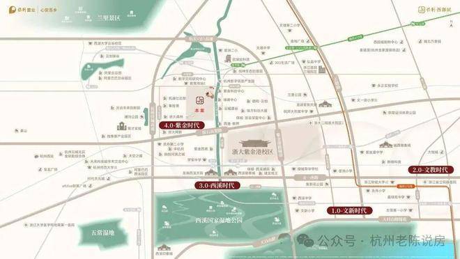 9.正处城西大走廊的起始点紫金港板块,东南约1.5km即为浙大紫金港校区,直线距离建设中的地铁4号线莲池站仅约700m。