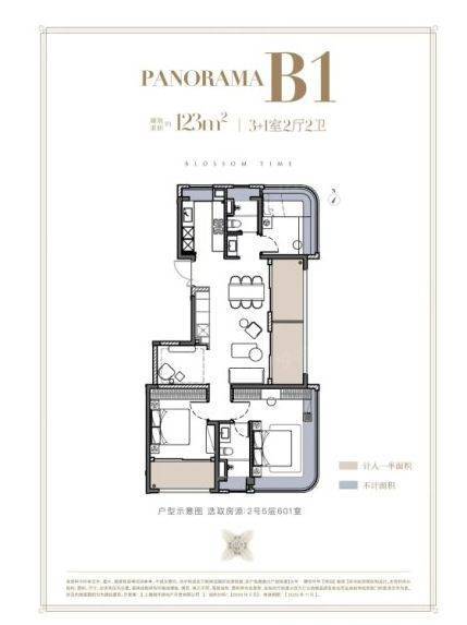 建面约123㎡(高层)三阳台和双270°转角,飘窗(实得率应该可以达到95%左右)