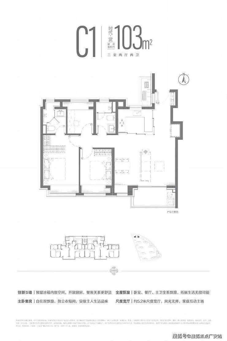 在建面约110㎡ 户型已有的两点之上再度升级,简约面144㎡户型更加匹配三代同堂、二胎之家。