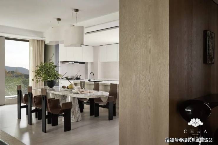 巨幕观景客餐厅,全落地通透超大玻璃,辅以270°跑道阳台,共享茶山、日落与晚风