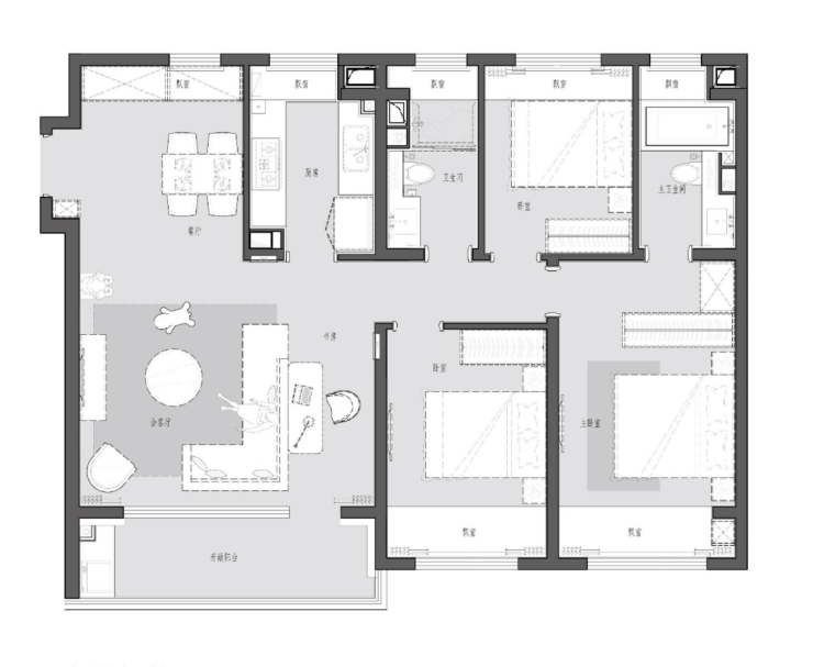 6,本批次房源的建筑面积段93.69-117.38平,其主力户型: