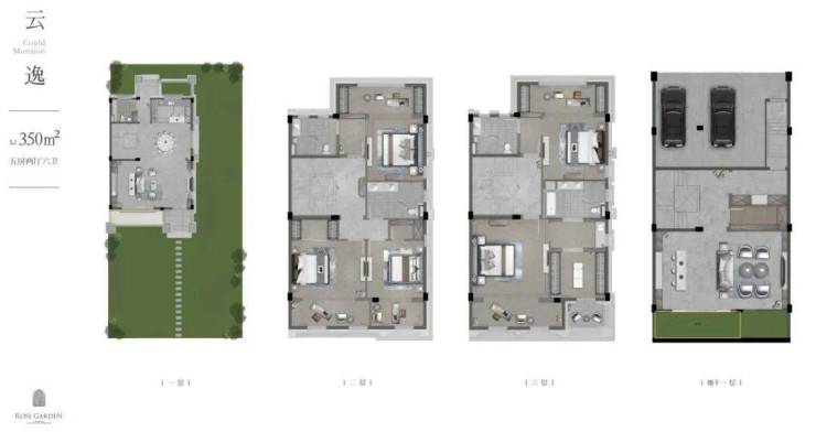 特点:五房设计,标配270°环绕庭院,最大庭院面积超450㎡
