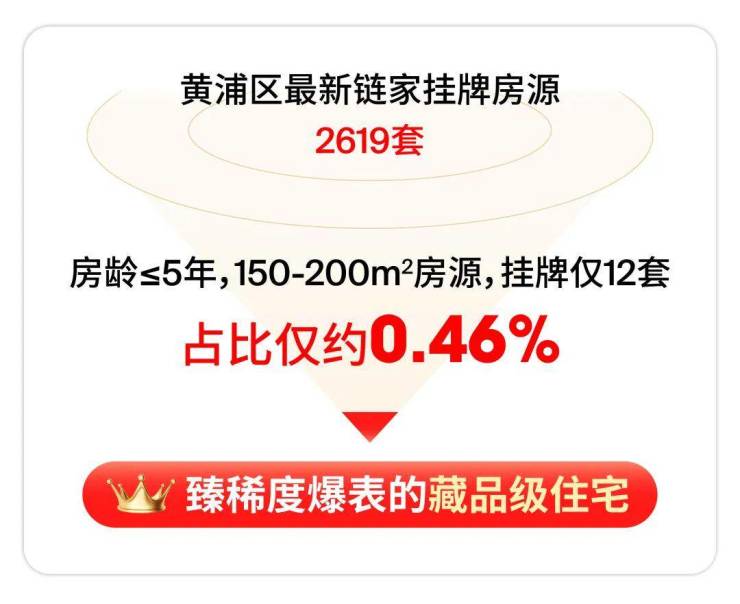 目前链家网上黄浦区共有约2619套挂牌房源,其中房龄≤5年的150-200m²房源只有12套挂牌。
