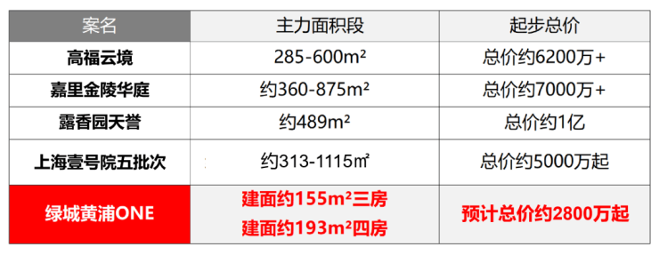 当前黄浦豪宅新房供应面积普遍超过300m²,总价5000万到1亿以上,绿城黄浦ONE是当前区域内3000万级总价段的独苗,是黄浦核心地段最后的上车机会!