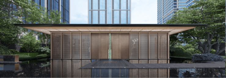 山河颂建筑立面线条采用直线勾勒传承苏式韵味,采用高品质公建化立面,现代风格,选用银白色铝板搭配超白low-E玻璃,在整个苏州都是独一无二极具有昭示性!