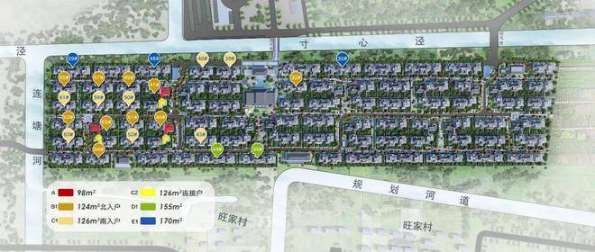 容积率仅0.41,绿地率50%,户均占地超300㎡。主力户型为建面98-172㎡的合院别墅,附赠50-200㎡私家庭院及双车位,采用L型合院布局实现270°环景采光。