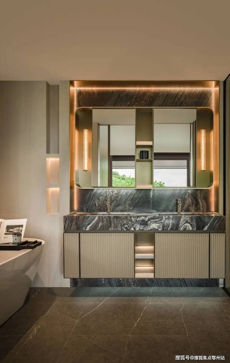 细密精致线条的木饰面与高贵石材结合奠定了经典纯粹的美感。所有休憩空间全部采用无主灯设计,柔和布光,且从公区到衣帽间,至卧榻一步步光影由明转暗,逐步带来放松的感受。