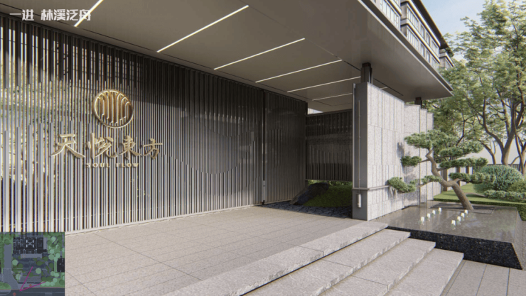 ·一进东方门庭:迎宾罗汉松、奢华屏风、独立车行大门;
