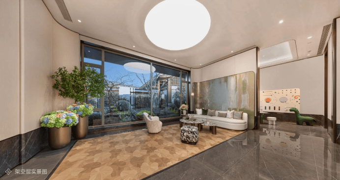 约2500㎡架空层泛会所,则将多功能会客厅、儿童乐园、共享书吧、运动空间等场景延伸至园林之中。业主未来下楼即可开启邻里社交,随时享受全龄运动、休闲等场景。
