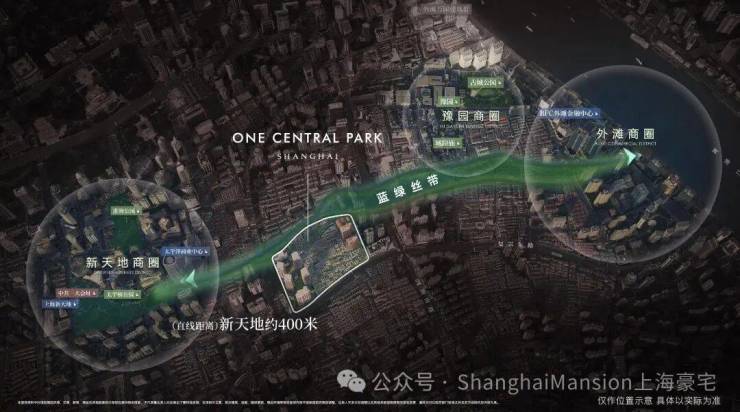 距离新天地直线距离约400米,作为蓝绿丝带规划上的关键节点,随着大新天地东进南拓战略逐步实施,通过水景、绿地和公共空间,串联新天地、豫园、外滩三大世界级商业版图。