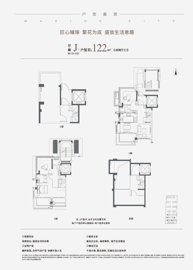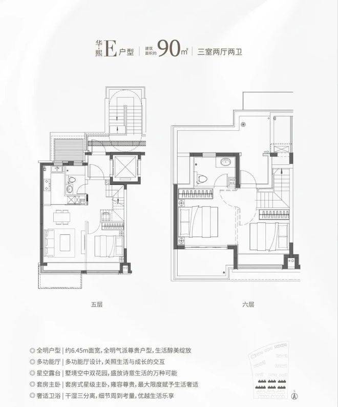 1建面约99㎡3房2卫&建面约90-133㎡叠墅