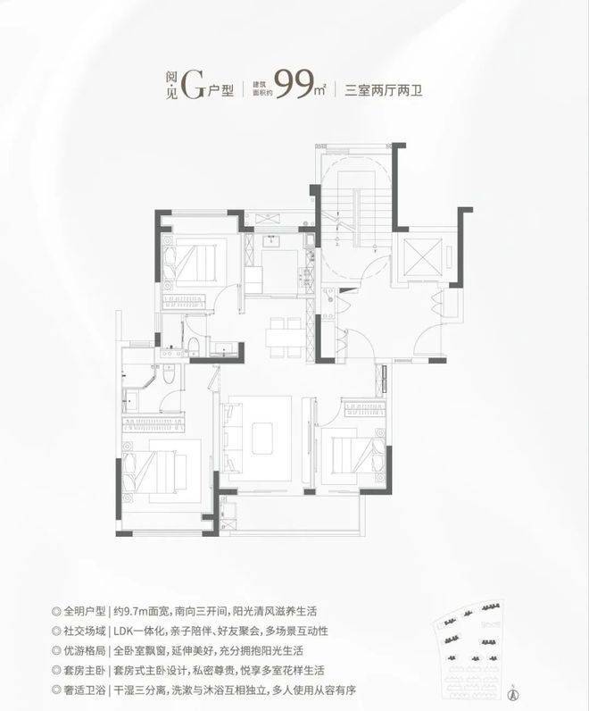 ①建面约99㎡F&G户型:南北通透+三开间朝南,备受认可的飞机户型!