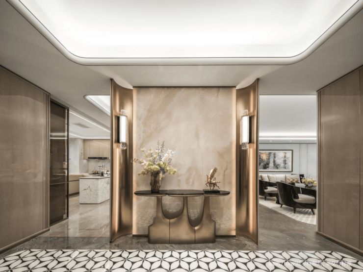 一梯一户设计,户户私享建面超9㎡墅级序厅,双开门、双玄关、双动线入户,动接北向公区,静通南向卧室,归家之旅步履生辉。