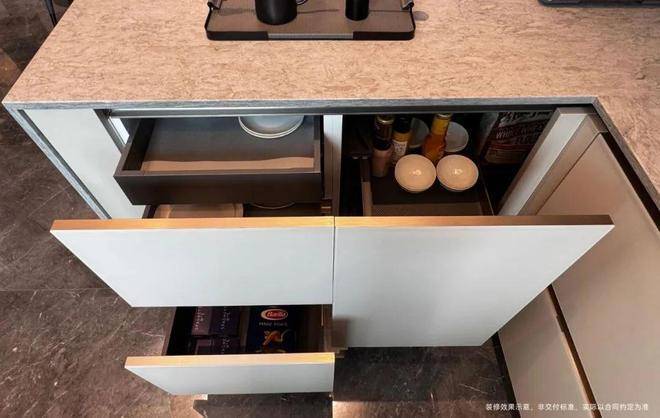 To make the kitchen a "truly happy place", Puyuan pays attention to every detail, from the base cabinet pull-out basket system, to the upper cabinet system, and then to the drawer compartments system. The combination of shallow and deep drawers makes the entire kitchen space both versatile and orderly.
