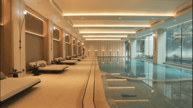 中庭共规划了大手笔4500方中央景观,同时配备了超1400㎡的下沉式会所,面面俱到。其中还包含会客酒廊、恒温无界泳池,健身房等,在会所实现会客、休闲、健身于一体的体验。这个配置,以及无边界恒温泳池在这个总价段位是比较少见的。