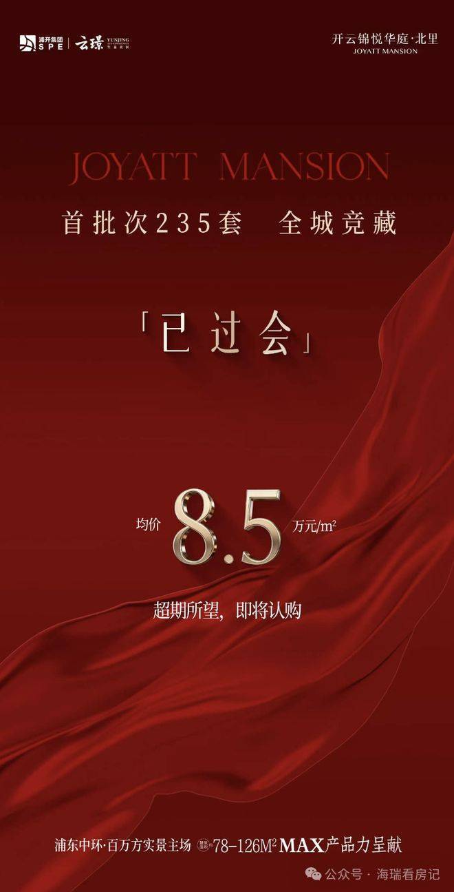 新消息,浦东金桥「开云锦悦华庭·北里」已过会,即将认购!建面约78-126㎡两房到四房,均价约8.5万/㎡!