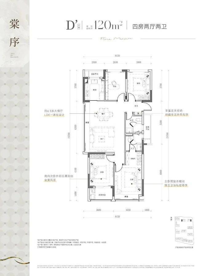 同时,双厅一体化,铺展约6.3米大飘窗,不浪费一点过道,增加了不少家人社交共融场景;南向套房主卧,独立卫浴间+飘窗,居住舒适度更进一步。