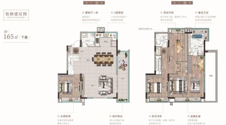 1、建面约175平的户型做了超大横厅设计,整个客餐厅有几十平的空间,方正大气,空间感十足。