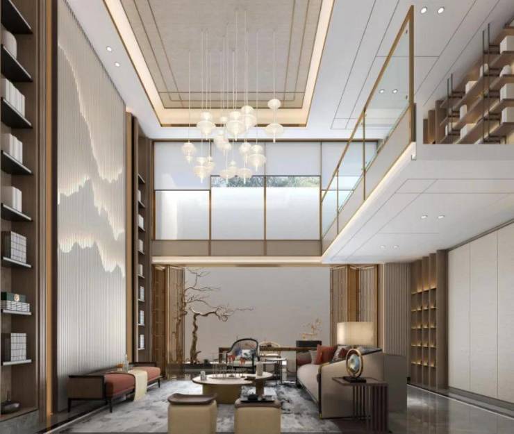 客厅挑空。所有户型客厅上空均做了约6米高的挑空,交付后业主可自行做隔断,作为拓展面积使用。二楼部分可做为超大卧室空间。