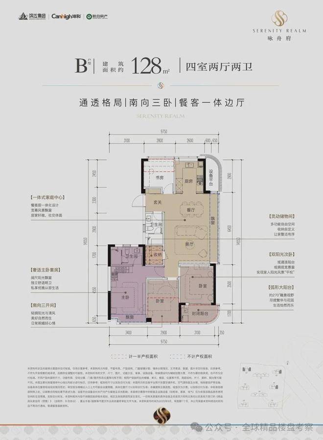 核心标签:南向四开间+阳光双套房+270°弧形飘窗