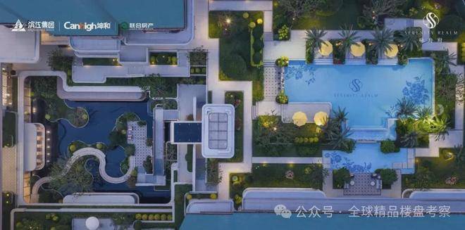 A "floating island" -like glass BOX is lightly placed in the landscape, containing multi-functional social Spaces such as a constant-temperature swimming pool, gym, tennis room, and party room. Combined with the cascading water feature, it creates a vacation-style experience that blends tranquility and dynamism.