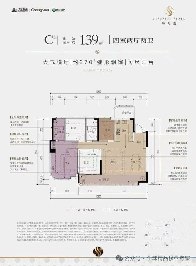 核心标签:大气横厅+270°弧形飘窗+阔尺阳台