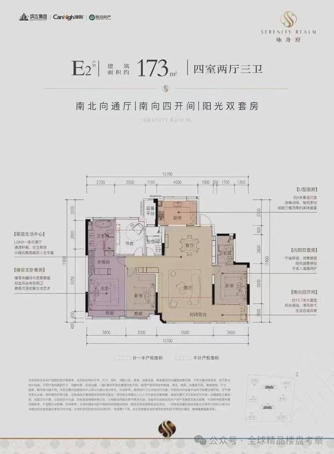 E2户型:173㎡ 四室两厅三卫(大平层B)