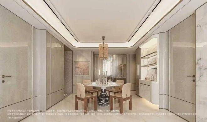 其次,在“飞机户型”带来的无过道优势中,一个最直观的体现便是“宽绰餐厅”的实现:它不仅容纳常规长桌,更能轻松置入一张小圆桌