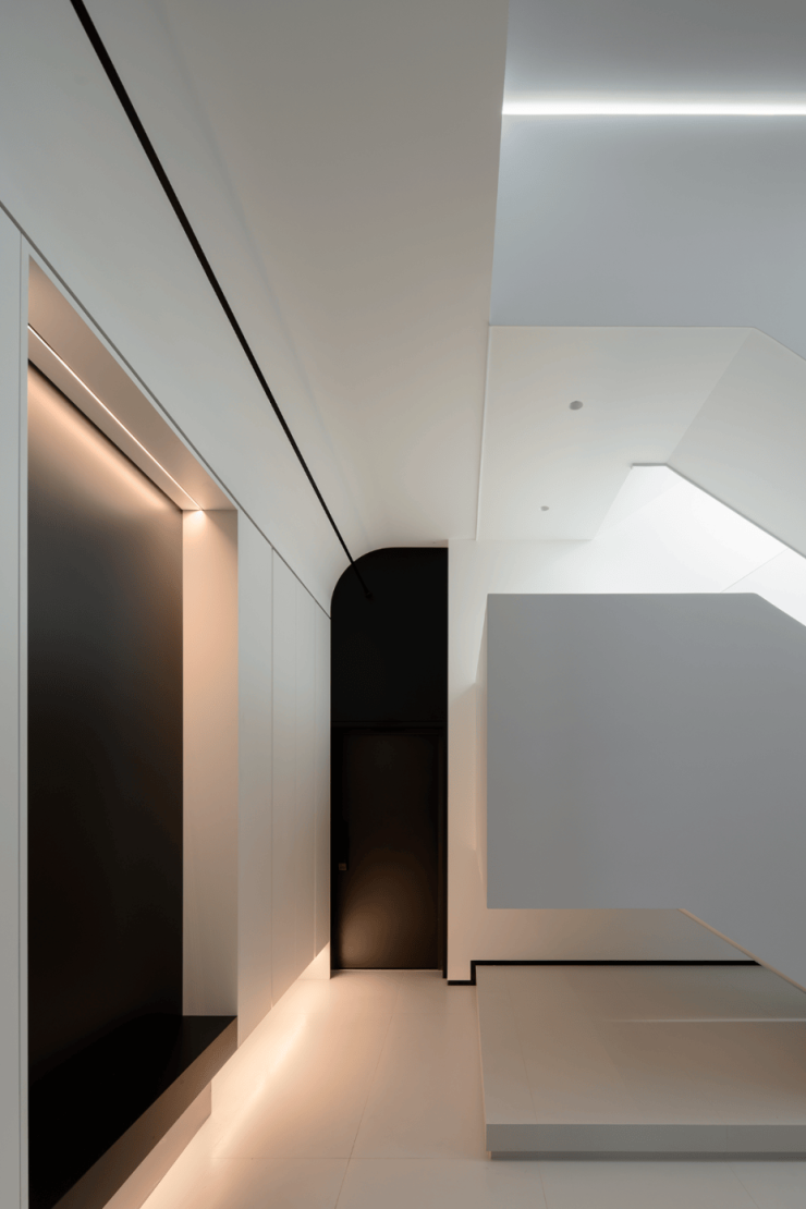 楼梯区完全被几何占据,自然光恰到好处的平衡,进一步呼应着空间的心境,衔接了生活和居所。