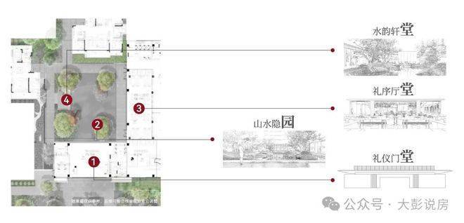 山水隐园在其中央,门堂、厅堂、轩堂围成合院,是一座三进式的院落。众多购房者在下定之前,都是先被实景示范区所惊艳。
