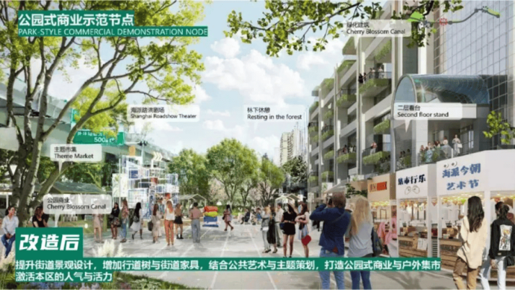 江湾板块新规划的商业将结合公共艺术与主题策划,打造公园式商业,并引入一线潮牌。