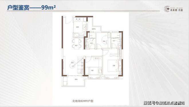 99㎡三房两厅两卫:LDKB一体化设计+主卧套房,奢阔阳台揽景,套均270万1。