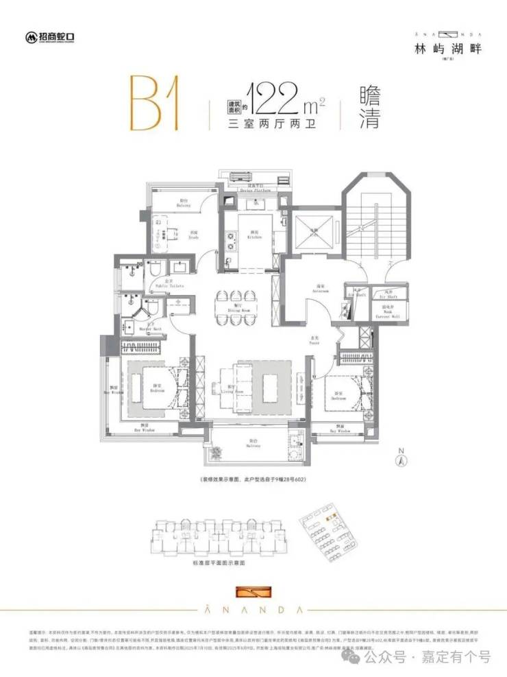 建面约112-122㎡湖居三房