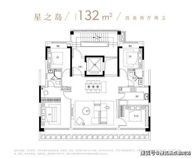 上海松江国贸海屿佘山售楼处电话➡:400-9939-964户型132平米,4房2厅2卫