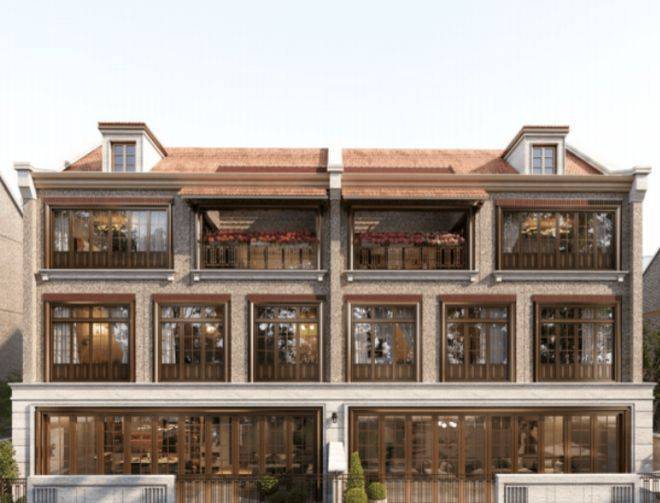 社区规划以“低密、生态、人文”为核心,建筑间距最大超70米,绿地率高达40%-42%,建筑密度仅约28%。外立面采用卵石工艺、石材门头等海派元素,与周边的历史风貌相呼应;园林设计以“一江两岸”为灵感,中央景观轴串联四季花木,营造出“推窗见绿、出门入园”的诗意栖居。8层洋房主力户型为105-143㎡的三房至四房,满足高端改善家庭的需求;而仅38席的风貌别墅,建面约175-280㎡,附赠南北双花园、星空露台及5.7米层高的地下室,实用面积可达产权面积的2倍,成为市场上稀缺的“有天有地”传世宅邸。