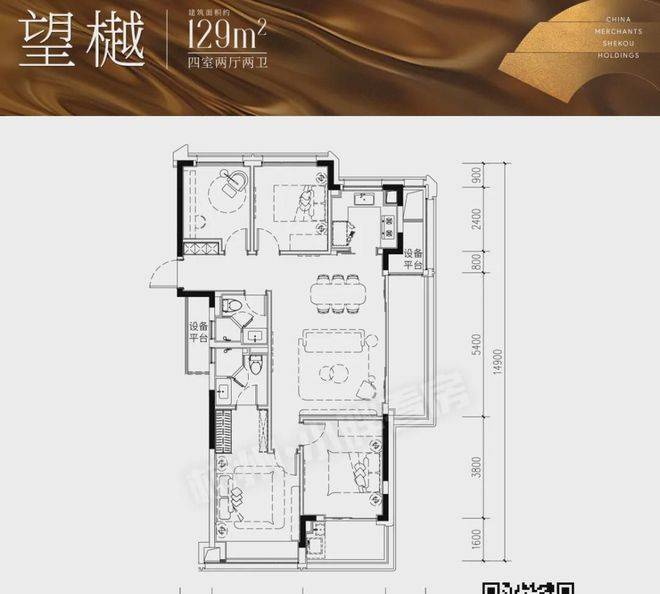 2、建面约129方四房两厅两卫: