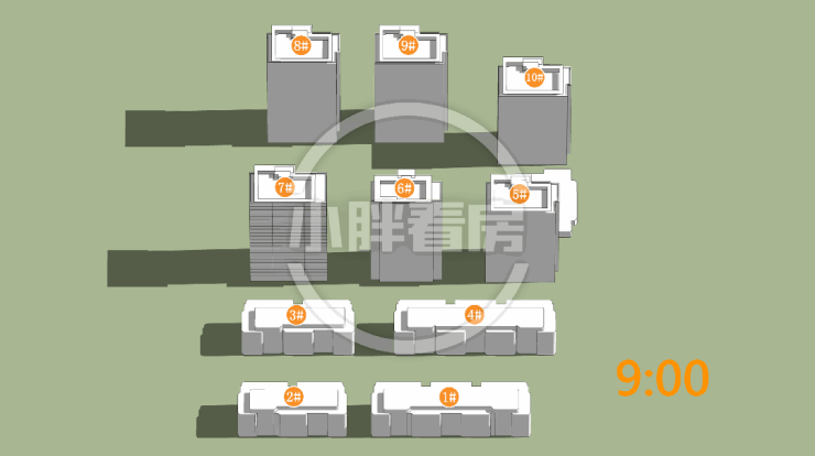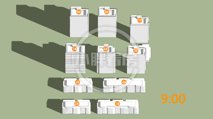 7#低层受遮挡。就具体遮挡时间而言,7#主要在上午和下午受3#遮挡。