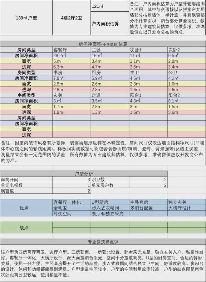 3、建面约139方四房两厅两卫:
