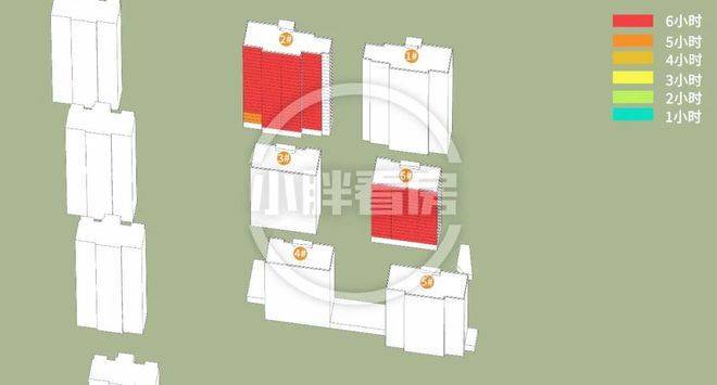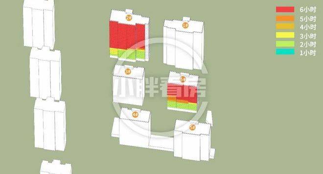 滨江绿城奥映鸣翠的分析结果是这样:计算已考虑周边所有建筑的影响,结果表明南边住宅不会对本次开盘楼栋产生遮挡,楼栋仅受地块内部影响。(说明:本文日照数据基于公示规划图纸文件,使用专业制作工具完成,仅供参考)