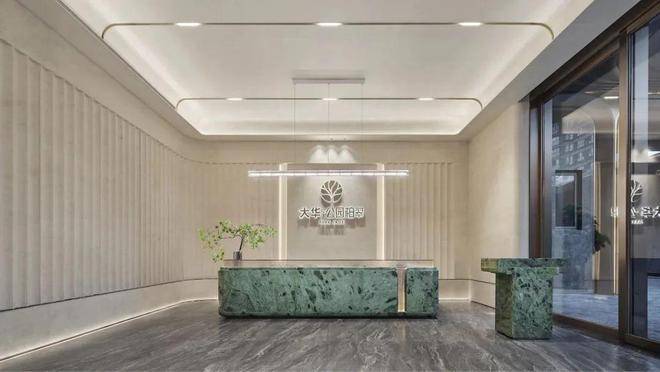 内墙材料选用来自保加利亚的维纳多石材,整块大理石圆弧拉槽,这是顶级豪宅才有的用料和细节。大堂接待台选用产自意大利山脉的宝格绿奢石一体打造而成。这些用料和最终呈现出来的浓郁海派氛围,是对大华集团实力和匠心最好的体现。