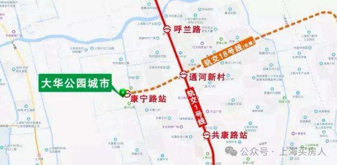 大华公园城市 位于宝山区康宁路长江西路,属中外环间,项目距离1号线通河新村站约1.4公里,可一线直达人民广场、淮海路、徐家汇、莘庄等CBD;距离“换乘王”之称的18号线康宁路站仅约500米。