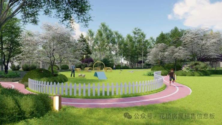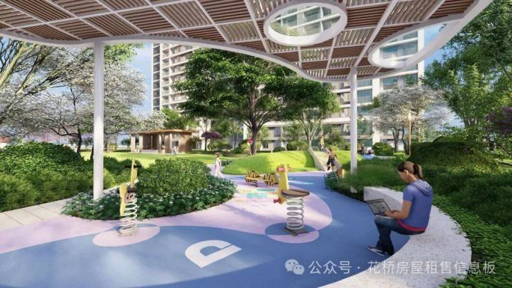 (项目景观效果图)【项目景观】以自然会客厅为核心主景,融入艺术廊架、阳光大草坪、泛会所架空层、健康跑道、儿童乐园等功能场地,构建风景中的社交场情景阳光草坪: