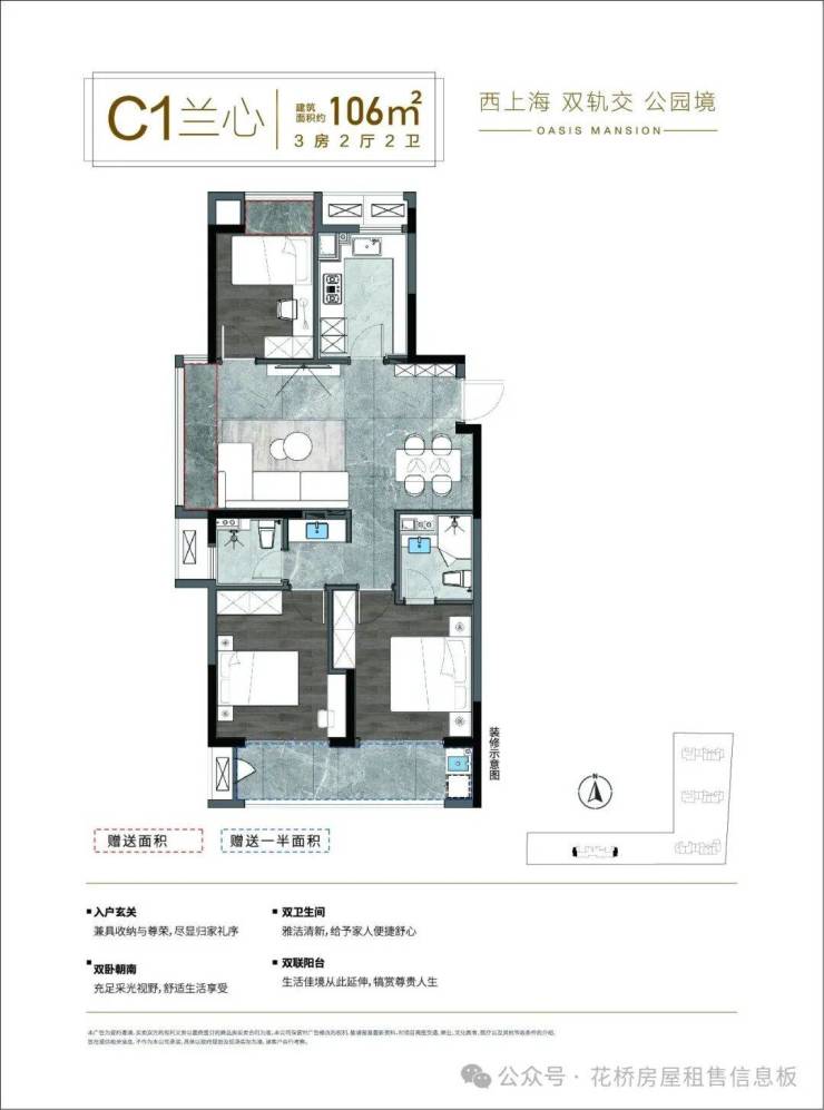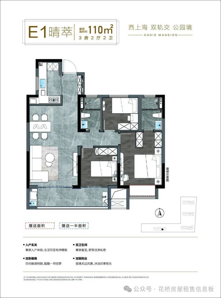 建筑面积约80㎡–110㎡装修美宅,配备新风、中央空调(“中空”建议写为全称),细节打磨品质生活。
