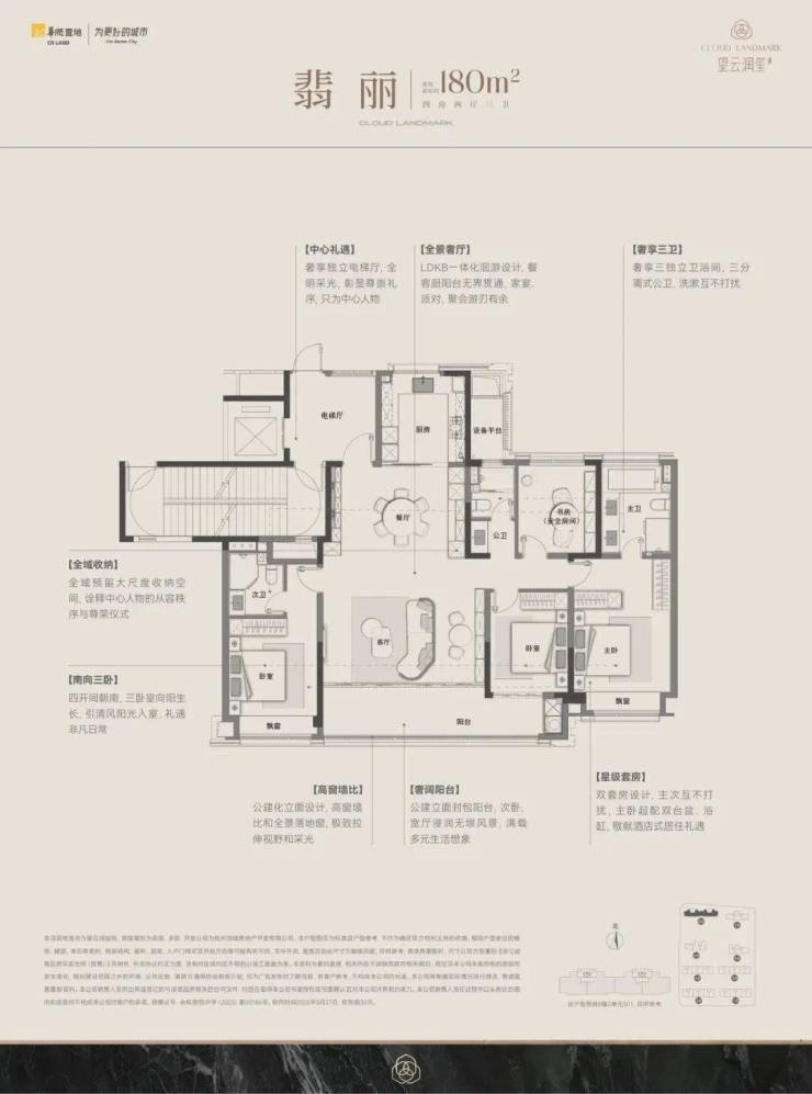 约 180㎡:南北通透 + 双联阳台,LDKB 一体化洄游,双套房设计,三代同堂从容