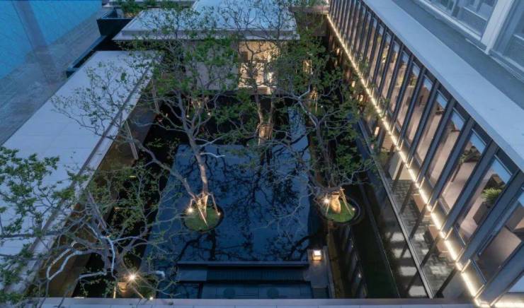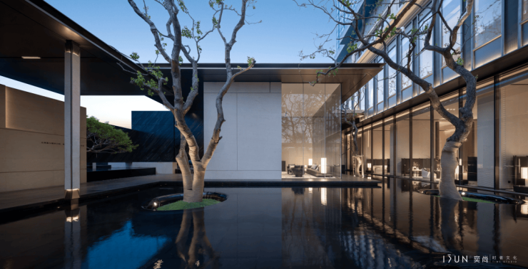 景观:镜面水景 + 层叠山林,建筑与景观浑然一体