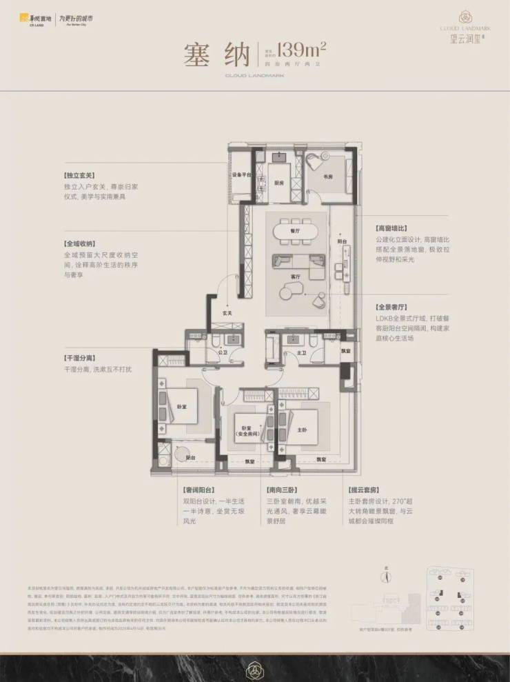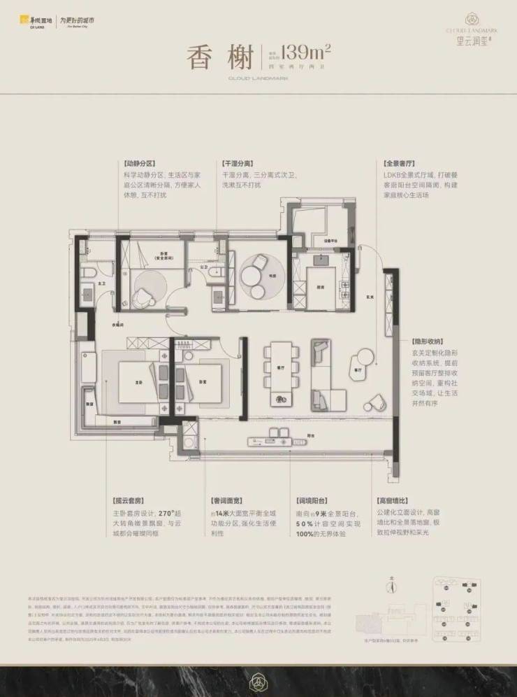 约 139㎡:空间利用率媲美 160㎡,巨幕餐客厅 + 270° 全景主卧 + 三开间南向阳台