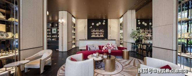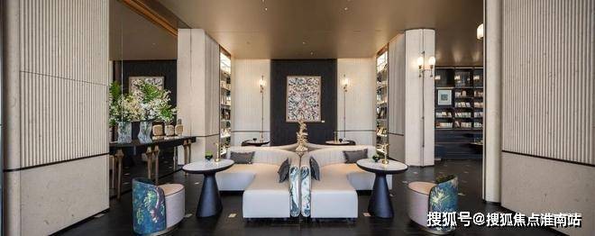 还有挑檐设计的架空层泛会所、地下车马院、艺术长廊,以及贝金米黄石材、水纹玻璃、海浪灰花岗岩、约12m通高落地玻璃……